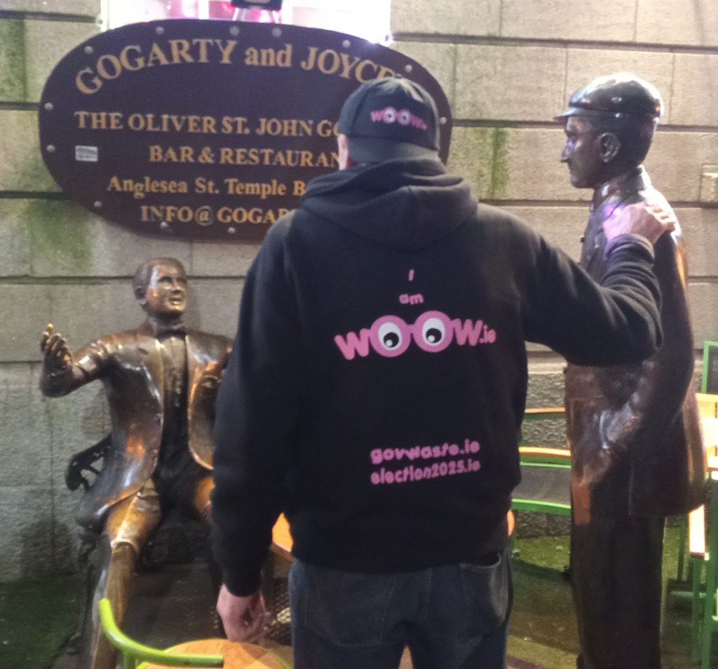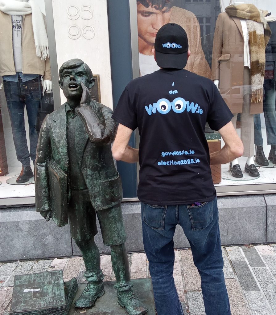 wϴϴw now suggests that you visit your local TD and tell them your issues. The first 522 from this group who visit to discuss your issues will get a free wϴϴw special edition tee shirt (note 3 per TD). These are special in that they don’t have the year of the election called by Mr Harris on them . A decision to call early that sadly was unchallenged. These tee shirts have the year your election should have taken place in. So these tee shirts are yours. They have election2025.ie on the back…..see gallery. They also have govewaste.ie on the back. Your wasted vote will be mentioned there soon.
